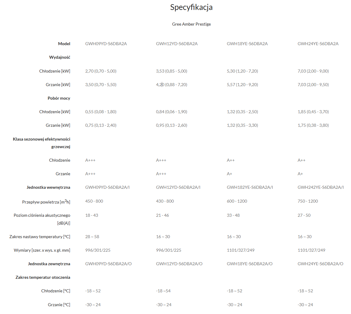 Dzięki szerokiemu zakresowi temperatur pracy, Amber Prestige ma możliwość pracy przy skrajnych warunkach zewnętrznych; grzanie przy -30°C oraz chłodzenie do 52°C.